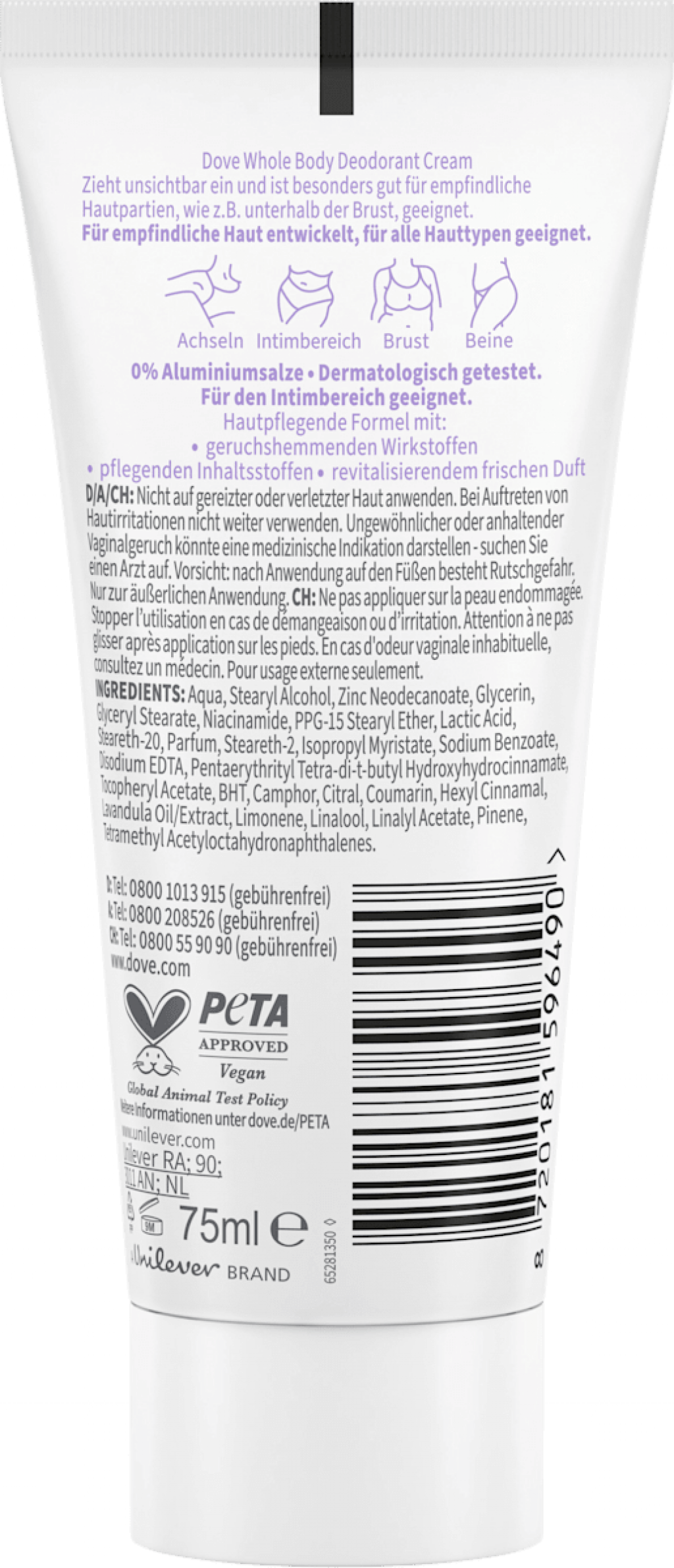 Dove - Desodorante Fragrância Deocreme Whole Body Lavanda e Camomila, 75 ml